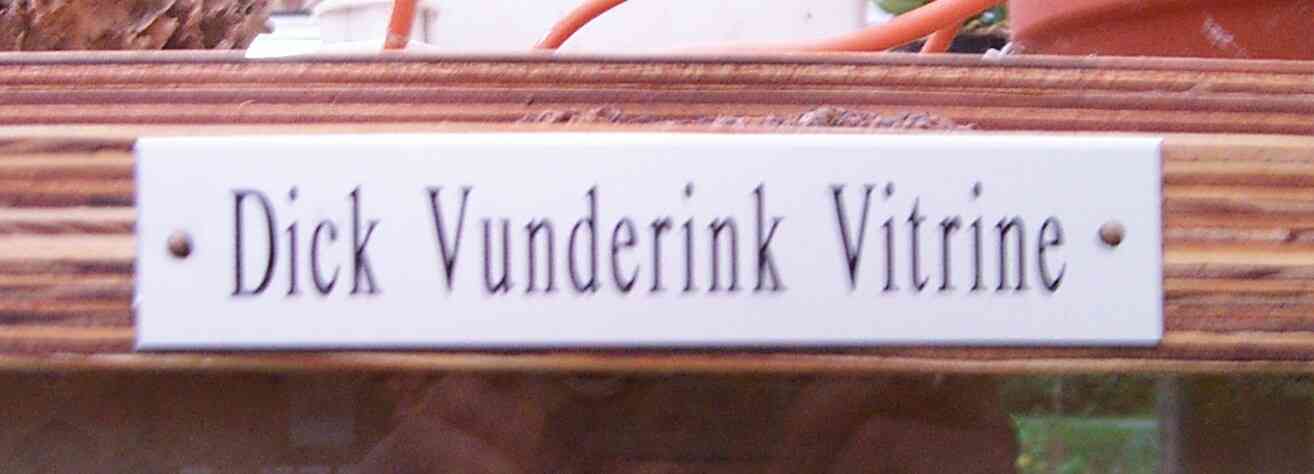 Na afloop van de Floriade, eind oktober 2002, is de Dick Vunderink Vitrine te bezichtigen geweest in het Bijenhuis Grintweg 273 te Wageningen. Inmiddels met nieuwe eigenaren is het verdwenen! Een duplicaat van de Dick Vunderink vitrine is/was ook te bewonderen in Kinderboerderij t’ Molentje gelegen aan de Burg. van Rappardlaan te Heemstede. Zijn er inmiddels meerdere duplicaten?, wilt u deze doorgeven aan de webbeheerder!